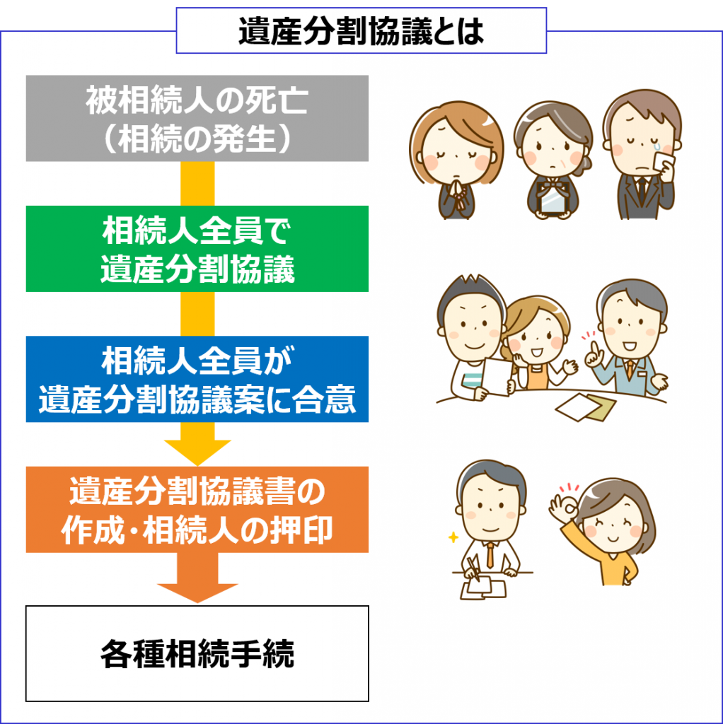 遺産分割協議は、裁判所を通さず、相続人間で誰がどの財産を取得するかを協議するものです。